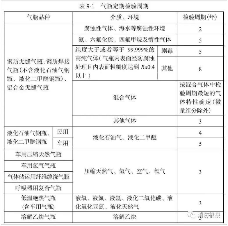 2 消防規定按照《氣瓶安全監察規程》執行,即按照《氣瓶安全技術規程》執行,故還應進行定期檢驗。